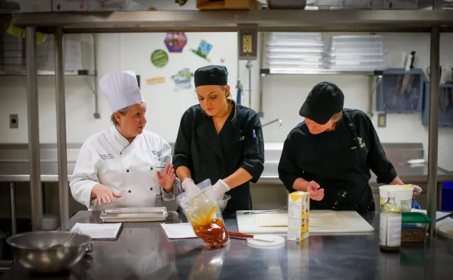 Image: Chef Wanda White, one of the creators of the Forward Food Culinary Experience, guides two chefs through a plant-based recipe during a culinary training event. Lance Murphey/HSUS