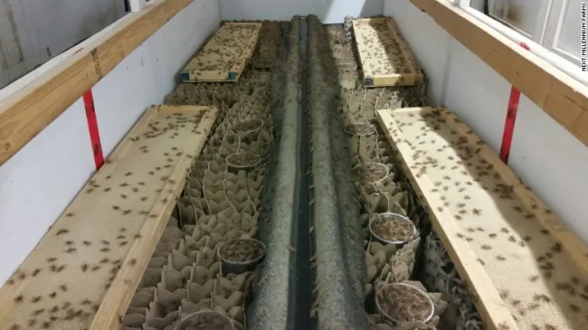 EntoCube of Finland has developed a shipping container system to raise insects. Photo credit:  EntoCubeIn both North America and Europe, these businesses range from insect farmers, mostly raising crickets and mealworms, to those producing processed goods, particularly from milled and ground crickets, i.e. cricket powder.  This is sometimes also referred to as cricket flour although it is not a suitable substitute for wheat flour on a one to one basis since it has higher protein and fat content makes it heavier than wheat flour and thus not a good substitute. In Europe, a significant number of companies are raising mealworms for food products using both whole and powdered mealworms; at the moment this species is less commonly raised in North America for food.