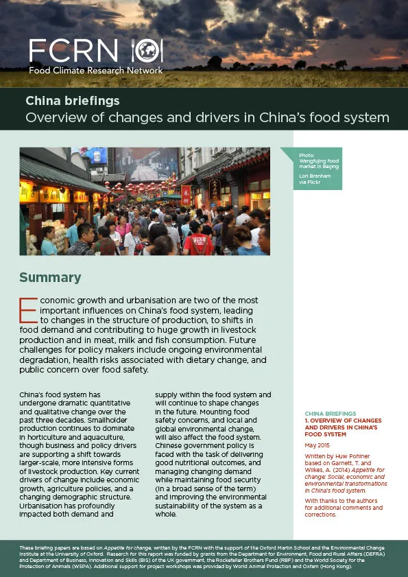 In 2014, the FCRN released a major report entitled Appetite for change: social, economic and environmental transformations in China’s food system. This provided a detailed and integrative analysis of the dramatic changes in China’s food system over the last 35 years, explored emerging environmental, health, economic and cultural trends and challenges, and identified policy and research implications.