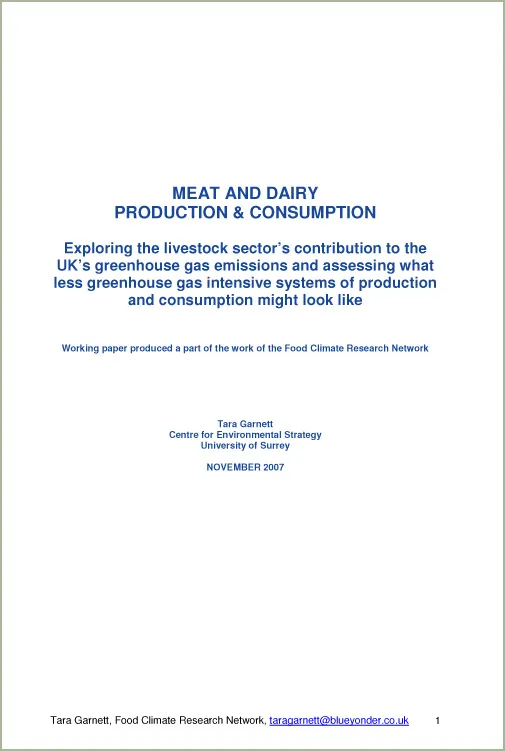 Meat and dairy production & consumption: Exploring the livestock sector's contribution to the UK's greenhouse gas emissions