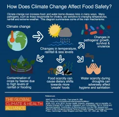- Climate change threatens food safety in a range of direct and indirect ways, putting health - particularly children’s health - and development at risk.