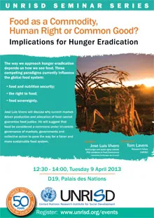 The United Nations Research Institute for Social Development (UNRISD) has released a podcast and power point presentation following a seminar held last week on the theme of "Food as a Commodity, Human Right or Common Good? Implications for Hunger Eradication".