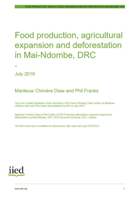 This International Institute for Environment and Development (IIED) report examines deforestation caused by small-scale shifting cultivation, logging, cash crops, mineral extraction and charcoal production, using the province of Mai-Ndombe in the Democratic Republic of Congo (DRC) as a case study.