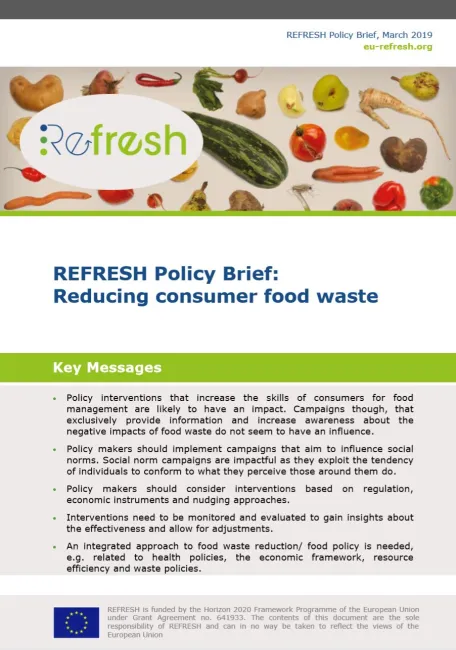 This policy briefing from EU food waste research project REFRESH outlines policy options for reducing food waste at the consumer level, based on both desktop research and a survey of households in four countries.