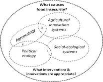Motivated by donor interest in innovative thinking on food security, we conducted an interdisciplinary, triangulation analysis of four divergent conceptual frameworks, each relevant to diagnosing food insecurity in developing countries. We found notable tensions as well as synergistic interactions between agroecology, agricultural innovation systems, social–ecological systems, and political ecology. Cross-framework interactions enhance our understanding of how sectoral and macro-economic development strategies impact on livelihoods, availability, and access. Re-invigorated, more profound dialog between divergent conceptual frameworks enables diagnosis of complex food insecurity problems, and context-specific interventions and innovations. Informed use of divergent approaches constitutes a new ambition for research and practice.