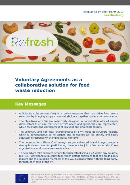 This policy briefing from EU food waste research project REFRESH outlines how ‘Voluntary Agreements’ between stakeholders throughout the supply chain can be used to reduce food waste, and makes policy suggestions to favour the creation of such agreements.